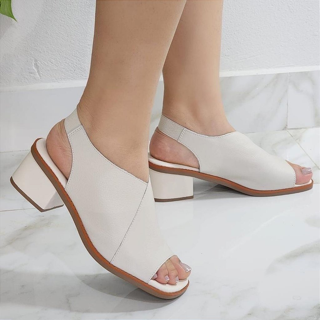 Sandália Couro Legítimo / Elástico / Peep Toe